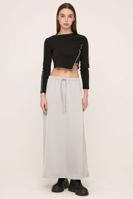Mia Striped Mini Skirt Front zip, hook close Elastic band on back Product Specification : 100% Polyester Flat measurement : […]